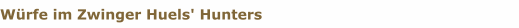| Wurf | Datum | Mutter | Vater | Rüden | Hündinnen | | A | 01.06.05 | Emilia v.Hofesaat | Lab Treasure's Moonshiner | 5 | 2 | | B | 17.10.06 | Emilia v. Hofesaat | Sesam aus Lühlsbusch | 4 | 4 | | C | 31.08.07 | H'H Ambrosia | Suttonpark B. at Rocheby | 4 | 4 | | D | 17.01.08 | Emilia v. Hofesaat | Duke v. Warsingfehn | 6 | 3 | | E | 03.05.09 | H'H Ambrosia | Alant v.d. Wegwarte | 4 | 3