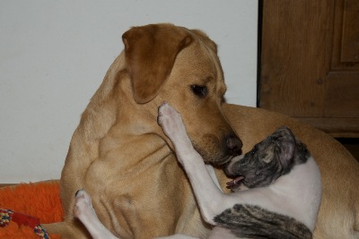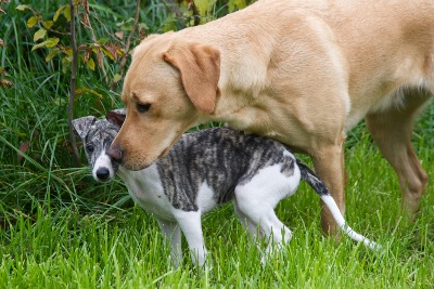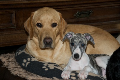 Im Oktober 2010 ist die kleine Whippethündin Audrey bei uns eingezogen und sie hat sich längst gut hier eingelebt und schnell einen Platz im Labradorrudel gefunden. Auf den Waldspaziergängen erweist sie sich als äussert mutig und unternehmungslustig, sie hat eine gute Nase und jetzt schon einen ausgeprägten Spurwillen. Die Dummyarbeit liebt sie über alles und wenn sich mal so ein blaues Teil in einem Wassergraben verirrt, sind da ja noch die richtigen Apportierhunde, die im Notfall immer gerne "einspringen".