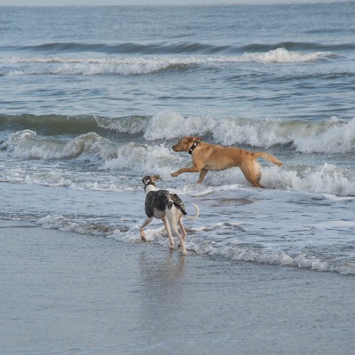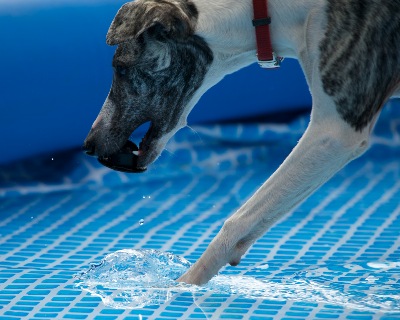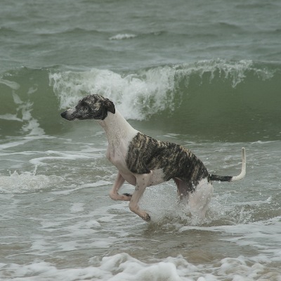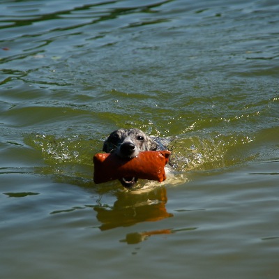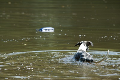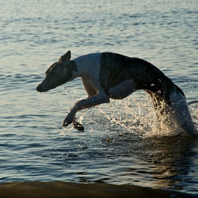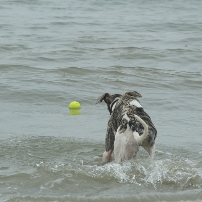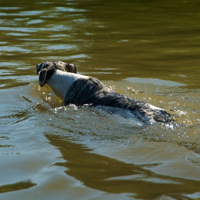 ....von wegen...ein Whippet geht nicht gerne ins Wasser.....