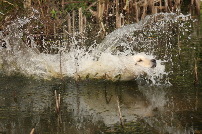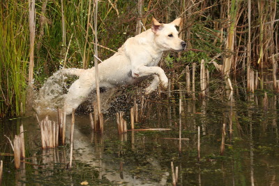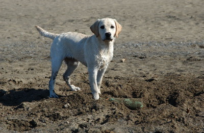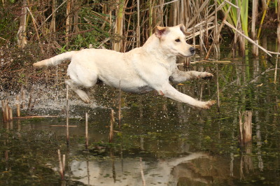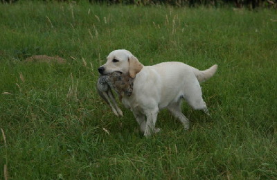Die 15 Monate alte Labrador Hündin zeigte einen ausgeglichenen Bewegungs- und Betätigungstrieb. Der Spieltrieb ist gut sichtbar geworden. Sie verhielt sich temperamentvoll. Die Hündin ist ausdauernd, aufmerksam und zeigt körperliche Härte. Ihre jagdlichen Anlagen sind in ausgeprägter Form vorhanden. Sie hat eine gute Unterordnungsbereitschaft und eine sehr gute Bindung. Gegenüber Fremdpersonen verhielt sie sich freundlich, aber wenig interessiert. Bei der Kreisprobe und in der Rückenlage völlig sicher und unbeeindruckt. Ebenso im akustischen und optischen Bereich. Sie ist schussfest.