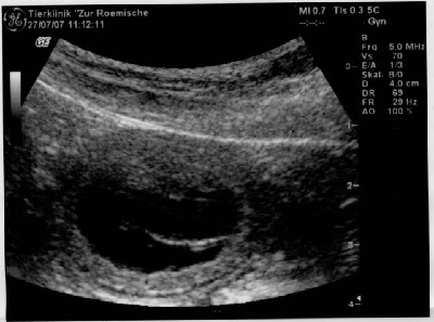 Am 27.07.07 bestätigte die tierärztliche Ultraschall-Untersuchung Ambrosias Trächtigkeit.