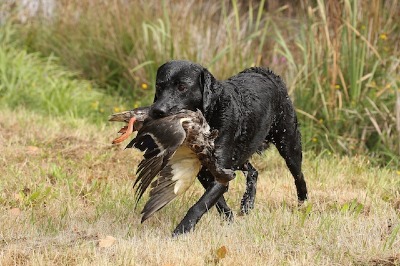 Beim Kennenlernen hat Dan mich durch sein ausgeglichenes Wesen, seine Ruhe und Gelassenheit ohne Arbeit und sein Temperament beim Arbeiten überzeugt und nach den bisherigen Erfahrungen mit Emma, sind wir sicher wir, daß es eine tolle Verpaarung wird.Da Dan auf der Welle gelbe Farbgene trägt,erwarten wir gelbe und schwarze Welpen, die für die Jagd, die Rettungshundearbeit, den Dummysport oder den Therapiebereich gearbeitet werden sollen.