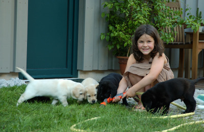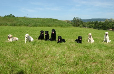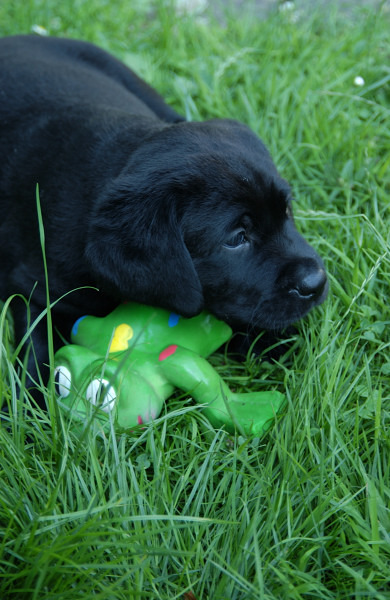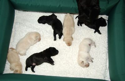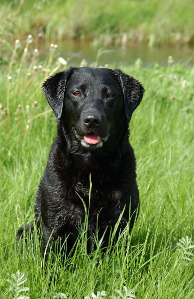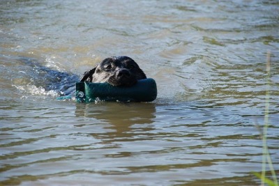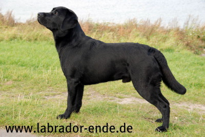 Hündin, schwarz Prüfungen: WT, BHP A, JEP mit lebender Ente Untersuchungsergebnisse: HD-Grad A1, ED-Grad frei