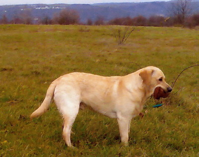 Hündin, gelb Prüfungen: WT, BHP A+B, JEP + Schweiß, JP/R, BLP, Langschleppe 800/1200/1500m Untersuchungsergebnisse: HD-Grad A2, ED-Grad frei RD/PRA/HC frei am 23.01.07 Formwert: vorzüglich OptiGen Test Results: Genotype is Normal/Clear EIC carrier Zuchtzulassung am 21.05.07, tauglich für die spezielle jagdliche Leistungszucht HD-Zuchtwert 93 ED-Zuchtwert 95 HC-Zuchtwert 91