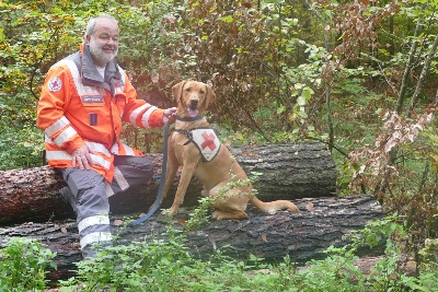 H'H Pino absolviert mit Bernd den Wesenstest und erhält eine schöne Beurteilung! Ein sehr dynamischer Hund, der sich sicher und freundlich mit Menschen zeigt und freudig mit ihnen spielt. Er zeigt ein sehr aktives Beute, Such- und Zutrageverhalten. Optisch außergewöhnliche Reize erarbeitet er sich im Team selbtsicher. Er ist schussfest! Herzlichen Dank an Bernd und weiterhin viel Freude mit Pino bei der Rettungshundearbeit!