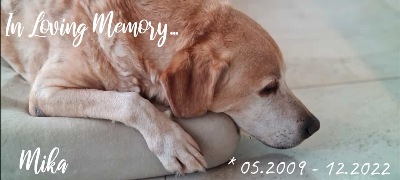 Anfang Dezember hat H'H Ellwood " Mika" seine letzte Reise antreten müssen. Liebe Lena und lieber Andreas, wir senden Euch viel Kraft für die traurige Zeit und unser tiefes Mitgefühl. RIP Mika, deine Familie wird dich sehr vermissen und bestimmt ist Birdie für ihn da!