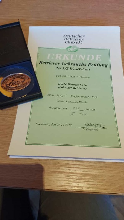 H'H Kuba "Cassie" hat als Suchensieger die VPS mit lebender Ente beim JGV Osnabrück bestanden. Tolle Leistung !Waidmannheil euch beiden!