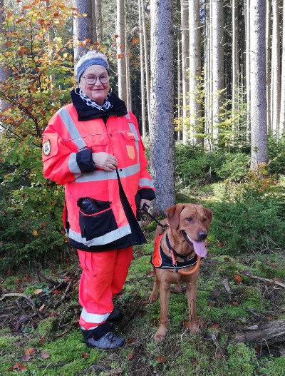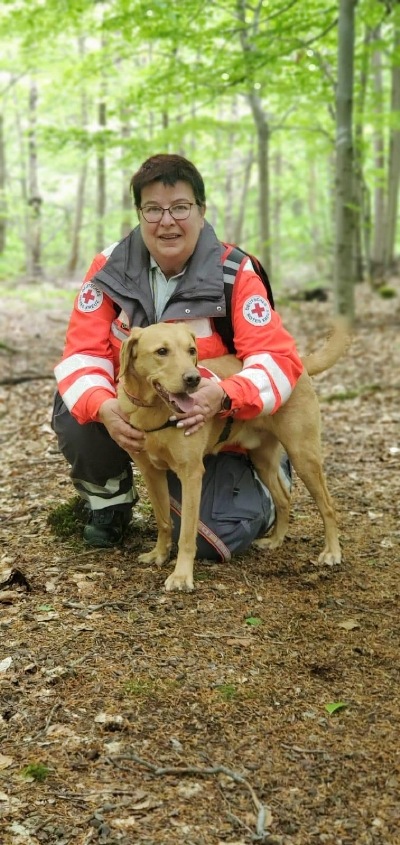 Martina und Murphy nach der Rettungs- hundeprüfung Fläche