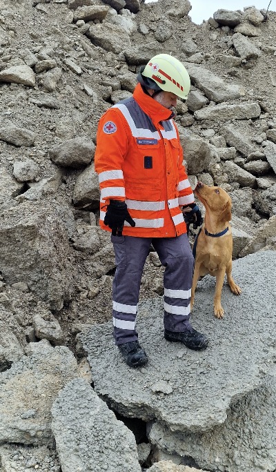 Bernd Knecht und Pino nach der Trümmer- Prüfung