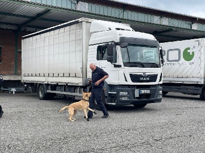 H'H Ocean absolviert in der Schweiz beim Zoll die Diensthundeprüfung und erzielt in der Kategorie Fahrzeug 97 Punkte, bei der Identifikationsstrasse 96 und im Bereich Innenraum 73 Punkte. Herzlichen Glückwünsch an Tobias und Ocean!Gut gemacht!