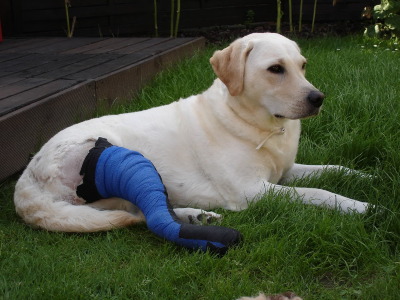 Huels' Hunters Chelsea hatte einen Kreuzbandriss und mußte sich einer OP unterziehen. Sie hat alles gut überstanden und konnte im Urlaub wieder Bergtouren machen.