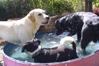 H'H Chuck hat heute zu seinem 2. Geburtstag eine Poolparty gestartet..... mit von der Partie: H'H Bigfoot und jede Menge andere Hunde....