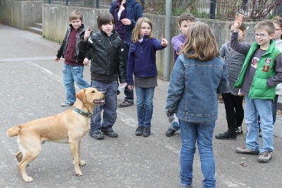 Huels' Hunters Ellwood "Mika" wird sowohl an KiTa’s als auch an Schulen begleitend eingesetzt und verrichtet die verschiedensten Aufgaben. (Working Dogs)