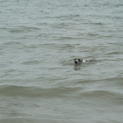 Huels'Hunters Delilah, genannt "Jette" bei der Arbeit am Wasser.