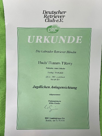 Huels' Hunters Raja war beim Formwert und wurde von Frau Hassi Assenmacher -Feyel mit einem " Sehr gut" bewertet. Herzlichen Glückwunsch an Familie Dr. Stirken.