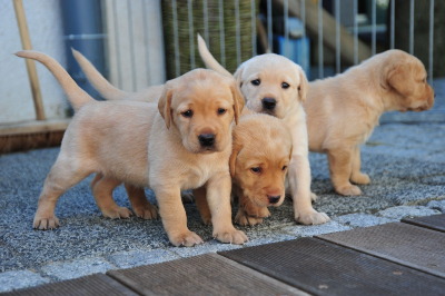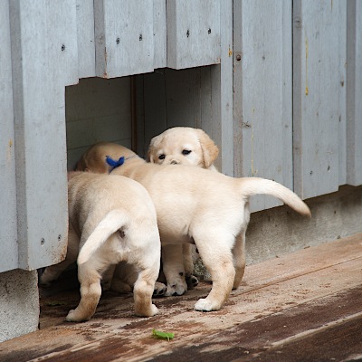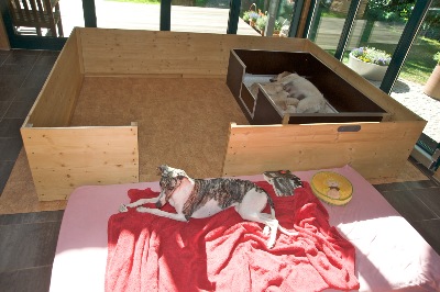 Nach der 4. Lebenswoche dürfen die Kleinen ins "Hundehaus" umziehen. Sie können so jederzeit durch einen "Hundeschieber" raus und lernen sehr früh ihr eigenes "Heim" nicht mehr zu verunreinigen. Ein guter Start in Richtung Stubenreinheit.