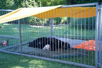 In dem Welpenauslauf können die Welpen ihre neue Welt
