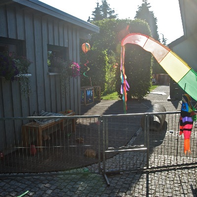 Je nach Jahreszeit und Witterung dürfen die kleinen in den Garten. Hier haben sie die Möglichkeit Gras, Steine, Wiese und Holz als Untergrund kennen zu lernen. Es darf nach Lust und Laune gegraben werden.