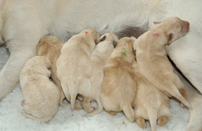 Unsere Welpen werden im Haus geboren und verbringen auch die ersten Wochen dort. Von Anfang an werden Sie täglich gewogen und erfahren so schon früh den Kontakt zum Menschen. In den ersten zwei Wochen beschränkt sich der Kontakt zu den Welpenauf unsere Familie. Ruhe und Schlaf haben sowohl für Welpen als auch die Mutterhündin in dieser Zeit Vorrang.