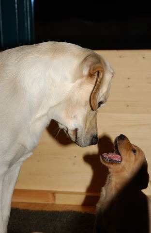 Wenn die Mutterhündin es gestattet, dürfen nun auch die andere Hunde aus unserem „Rudel“ Kontakt aufnehmen.