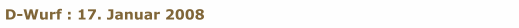 gelber Rüde, 60 cm gew. am 03.06.2000 Eltern: Gonzo von der Constanze x Arielle vom Warsingfehn HD = A2 ED 0 / 0 Augen: RD = frei / PRA = frei / HC = frei am 29.12.2006 PRA-Test: PRA-prcd-Test: normal/clear Zuchtzulassung vom 20.06.2002 Zuchtwerte: HD = 99 / ED = 95 / HC = 87 Prüfungen: WT, APD A, JP/R, BLP Besitzer: K. u. R. Adamzyk, Zum Häsebusch 23, 27628 Bramstedt Züchter: Achelpöhler, Finnaerberg 10 27628 Bramstedt TAUGL. F. JAGDL. LZ