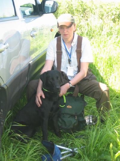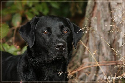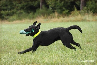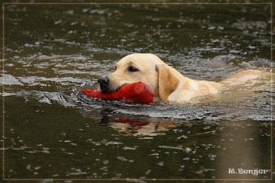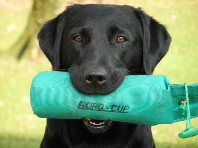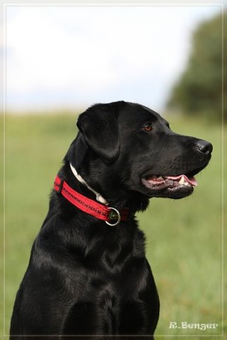 Der 17 Monate alte Labrador-Rüde hat eine vertrauensvolle Bindung an die Führerin und zeigt gute Unterordnungsbereitschaft. Er ist temperamentvoll, sehr bewegungsfreudig, aufmerksam und ausdauernd. Spür-, Beute- und Bringtrieb sind sehr gut erkennbar. Fremden Menschen gegenüber ist er freundlich, sicher und zutraulich, ebenfalls in den einengenden Situationen. Im opt. u. akust. Bereich sowie beim Schuß ist der Rüde sicher.
